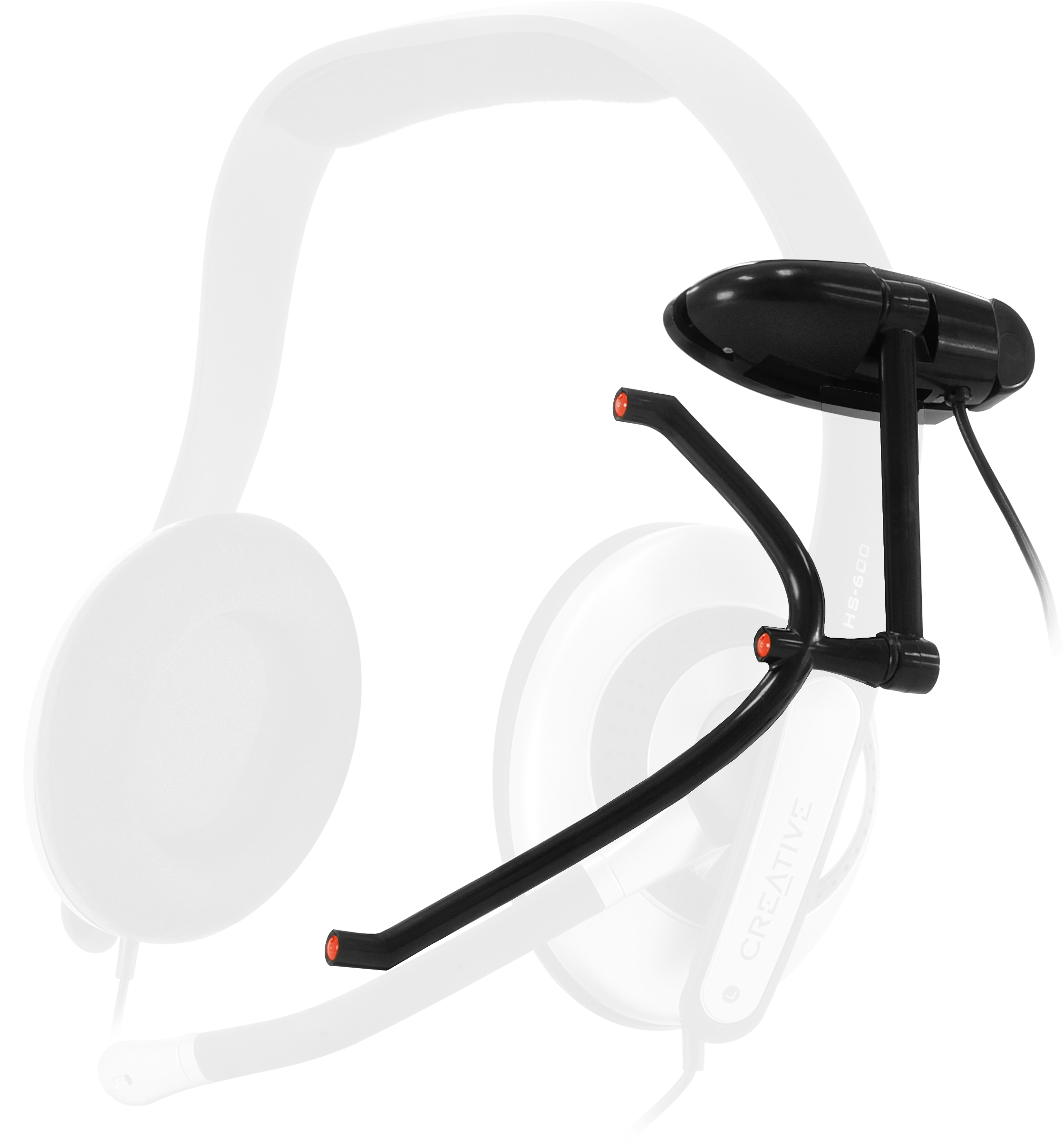 The TrackClip, included with every TrackIR 5 purchase, attaches to the brim of a hat or visor and has three retro-reflective markers that direct infrared light back to the camera. The , which attaches to most PC headsets, comes with active LED markers and is useful when you need to track from further away.